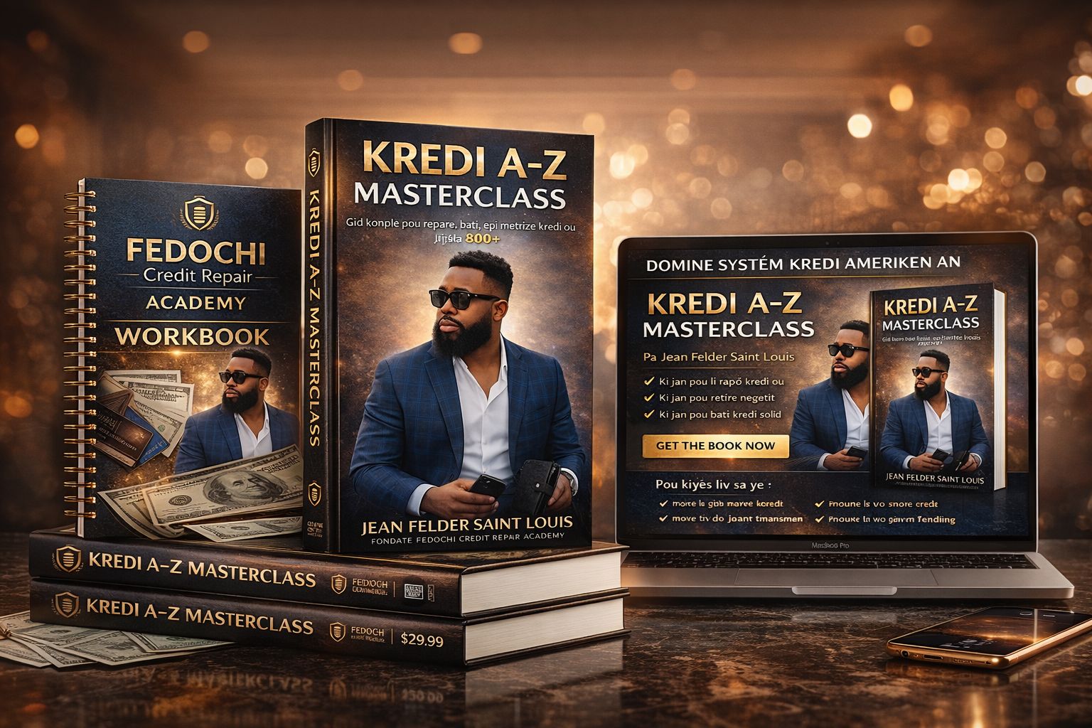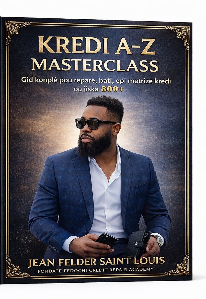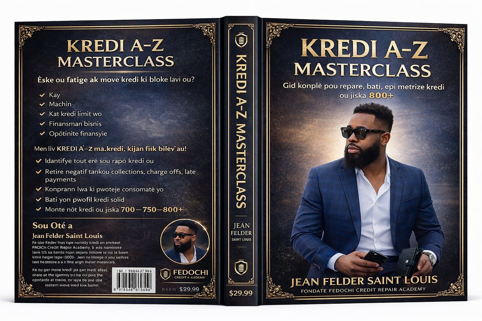 Ekri pa Jean Felder Saint Louis, fondatè Fedochi Credit Repair Academy, liv sa a pa sèlman bay teyori, men li ofri estrateji reyèl ki mache nan lavi chak jou. Si ou vle jwenn aksè ak plis kredi, achte kay, kòmanse biznis, oswa jis bati yon avni finansye solid, Kredi A–Z Masterclass se kle ou pou rive la.